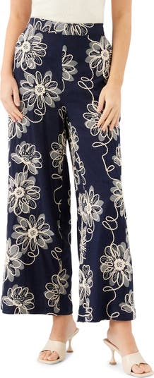 Adara Floral Embroidered Wide Leg Pants