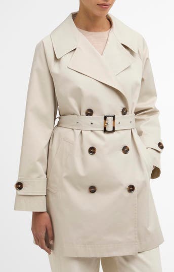 A tartan lining authenticates a shortened trench coat designed to resist raindrops and look polished doing it.
