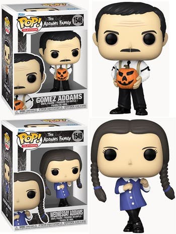 Gather your creepy and kooky relatives; Pop! Gomez and Wednesday Addams have arrived! Expand your Addams Family collection with this Pop! Gomez Addams with jack-o-lantern and Wednesday Addams as she busts a move! ! Vinyl figures are each approximately 3.9-inches tall.