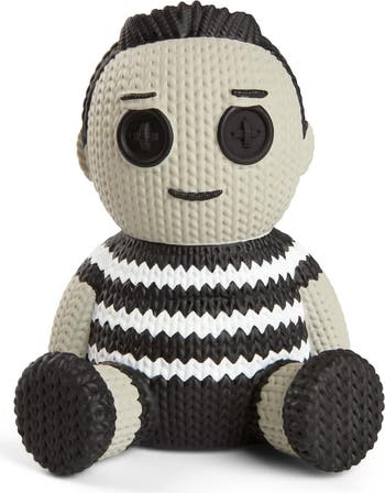 Approximately 5 inches tall and perfect for display or play Our friendly robots designed this figure to look like knit fabric at a glance, but it’s actually made of vinyl Signature vinyl tag on the figure, complete with barcode decal to resemble a sewn-in tag Pugsley Addams never looked so unique!