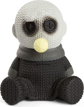Approximately 5 inches tall and perfect for display or play Our friendly robots designed this figure to look like knit fabric at a glance, but it’s actually made of vinyl Signature vinyl tag on the figure, complete with barcode decal to resemble a sewn-in tag Uncle Fester never looked so unique!