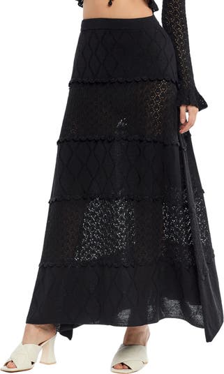 Serve elevated artisanal flair in this lacy cover-up skirt featuring tiers made of mixed stitches that create fresh contrast.
