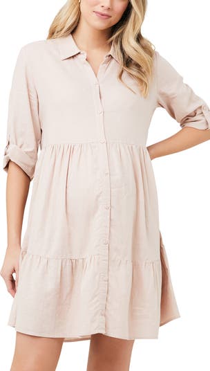 On everyone’s wish list is the Adel Linen Dress. Made from a lightweight linen blend making it breezy and breathable, this is a modern (maternity and nursing friendly) take on the classic shirt dress. Finished with cuffed elbow length sleeves, an empire seam, and double tiered skirt. A must-have in your wardrobe, pair this effortless dress with sneakers or slides. Relaxed fit Woven Linen Viscose blend Round neckline Button up front is nursing friendly Elbow length sleeve Nursing 55% Linen, 45% Viscose Length: 93cm (size small)