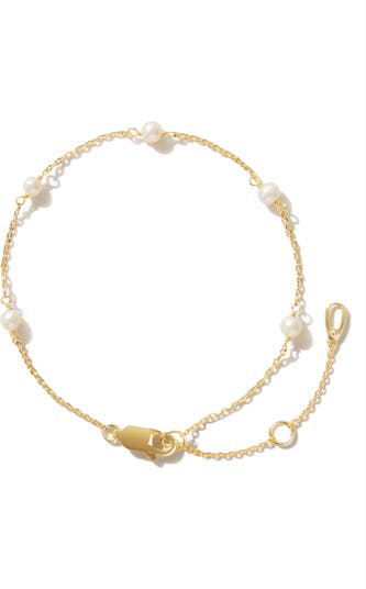 This dainty chain bracelet is inspired by classic '80s styles and is dipped in 14-karat gold and adorned with five freshwater pearl stations.