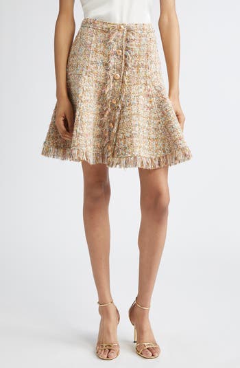 A traditional tweed skirt gets fun and flirty with a flouncy finish and a bit of sparkle.