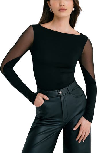 Sheer accents add glamour to this bodysuit designed in a curve-contouring silhouette and punctuated with a cheeky back for seamless look.