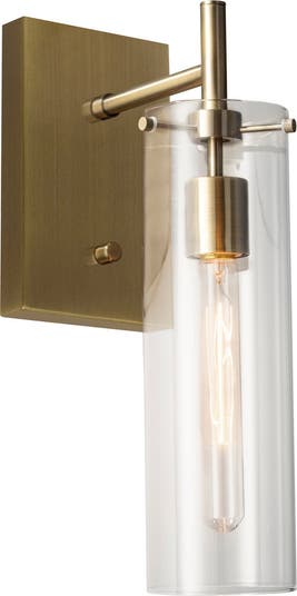 The simple geometry, exposed bulb and antiqued brass finish of this industrial-inspired lamp that adds intrigue to your living space, reading area or bedroom.