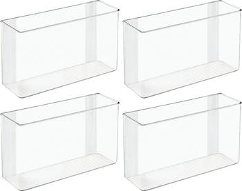 Turn wasted space into valuable storage with our iDeisgn Affixx Adhesive Organizer Bins. The self-adhesive backing easily mounts to any smooth, flat surface and serves as a sophisticated catchall everywhere from craft corners to laundry rooms for practical, space-saving storage. The clear, open-top design keeps supplies neat and visible to help eliminate clutter while the raised front keeps items securely in place and prevents them from falling. Constructed of durable, shatter-resistant plastic, this organizer bin brings convenient storage to any kitchen or pantry and stands up to daily use. With iDesign, you can live simply every day.