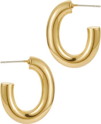 Switch up your hoop rotation with this oval-shaped pair done in a sleek, tubular silhouette and plated in warm 18-karat gold.