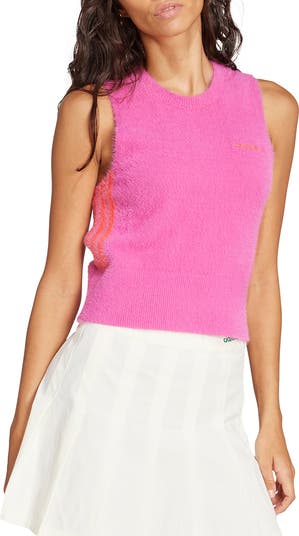 Heritage 3-Stripes and logos lend pops of contrast to this fluffy vest that shows the softer side of the sporty label.