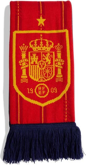 Prepare for the excitement of the 2026 World Cup with this vibrant Spain National Team Team Scarf from adidas. This essential fan accessory is designed with a double-sided pattern, featuring high-quality woven graphics that proudly display the team's colors and crest. Measuring approximately 61 inches long, including the stylish fringed ends, it provides ample coverage for cooler match days. This scarf is the perfect way to wear your allegiance and showcase the spirit of the La Roja ahead of the global tournament.