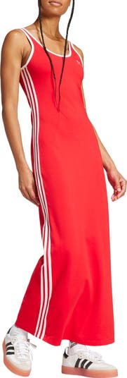 Sharpen your sporty style with this knit maxi dress featuring signature 3-Stripes racing down the sides and a slit for added ease.