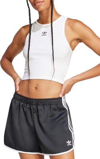 A center embroidered Trefoil logo adds heritage adidas styling to a sporty ribbed tank cut from a stretchy cotton blend.