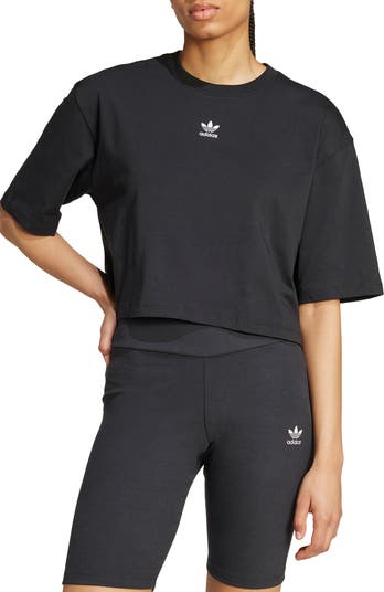 Kick back or crush your to-do list in this soft cotton T-shirt with a cropped, oversized cut that pairs well with your favorite high-waist styles. An embroidered Trefoil logo completes the sporty look.