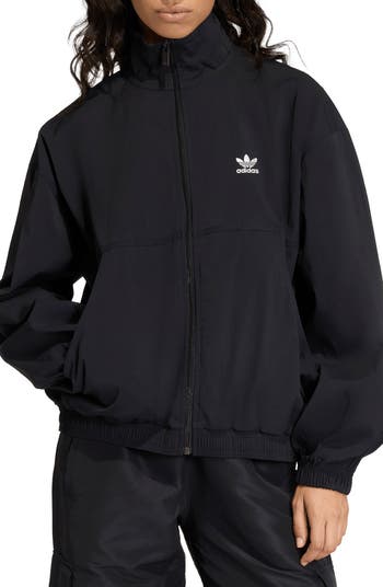 An oversized fit means a more relaxed feel in this woven windbreaker popped with the brand's Trefoil embroidered at the chest for an iconic touch.