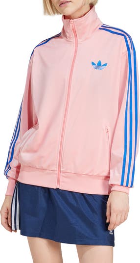 The brand's iconic 3-Stripes make an appearance tracing the shoulders and sleeves of a sporty track jacket crafted with a loose fit for more room to move.