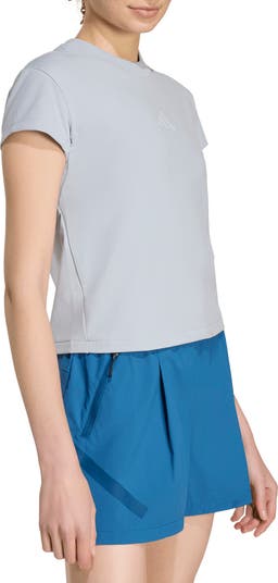 A matte-rubber 3-Bar logo adds a sporty accent to the otherwise minimalist design of this baby tee that's always ready for meets or meet ups with it's casual-cool look and Climacool technology.
