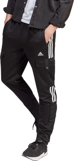 Stretchy and breathable, these pants made with recycled fibers sport a close, out-of-your-way fit, on-trend cargo pockets and 3-Stripes racing up both legs.