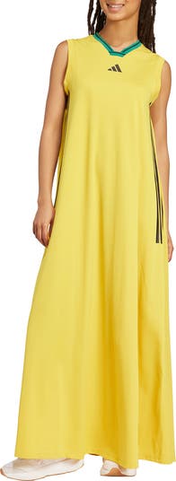 Go with the sporty flow and warm-weather vibes of this soft mesh maxi dress branded with heritage 3-Stripes at the sides.