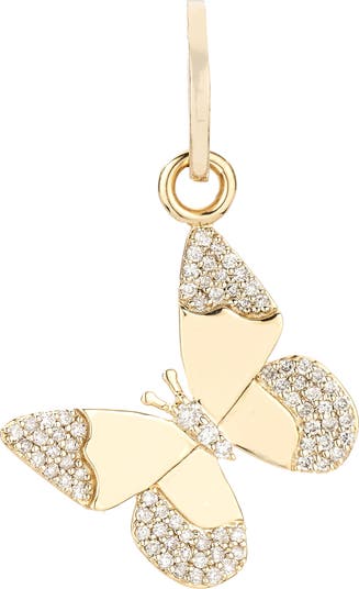 Prong-set diamonds add sparkling detail to the wingtips and body of this lovely butterfly charm that can be worn with any chain length.