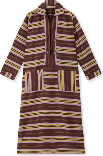 The Adish Caftan Dress is a timeless piece of elegance and style. The stripes create a dynamic visual effect, while the light fabric gently drapes, offering lightness and freedom. Perfect for summer days, this caftan dress adds refinement to your look. Wear this garment and embrace a relaxed and chic atmosphere, embodying sophisticated elegance. Crafted by Fortela , this dress reflects a commitment to quality and sartorial craftsmanship.