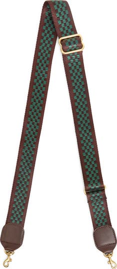 Give your favorite bag a playful new personality with this adjustable leather-tabbed crossbody strap that clips on with the polished brass snap hooks.