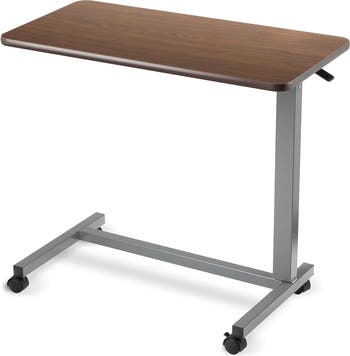 Invacare Adjustable Medical Bedside Table with L-Shaped Base, Main, color, Brown