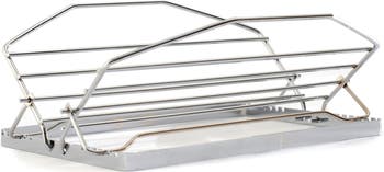 The Norpro Adjustable Roast Rack is a lightweight, nickel-plated rack designed for versatile roasting. Measuring 11 inches, it fits most standard roasting pans and adjusts to seven different positions to hold poultry or roasts securely. Elevates food for even cooking and browning, then folds flat for convenient storage. Hand wash recommended.