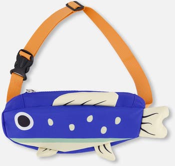 The fish-shaped fanny pack in royal blue reels in smiles with its playful silhouette. This belt bag features a curved fish body, a tail-inspired end, and a low-profile shape that sits neatly at the waist or crossbody. Built in lightweight 100% polyester, it includes a secure zip main compartment, an adjustable webbing strap with side-release buckle, and a lightly structured base to keep its fishy form—perfect for seaside strolls, park play, and everyday adventures.