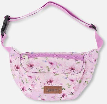 This fanny pack in purple with flower print brings a playful floral twist to any outfit. Designed with an allover blooming pattern, this accessory features an adjustable strap, a secure zip closure, and a “2par2” logo label at the front for a signature touch. Made from 100% polyester, it’s a lightweight and durable accessory for everyday adventures.