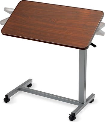 Enjoy enhanced comfort and convenience with the Invacare Adjustable and Tilting medical bedside table, designed for both medical and home use. This rolling tray table adjusts easily from about 28″ to 40″ in height to suit eating, reading, laptop work or medical needs, and features a tilting tabletop that angles up to 20° in either direction for ergonomic positioning. Durable, welded steel construction and smooth swivel wheels let you move the bed tables effortlessly and lock it securely in place. The attractive walnut wood-grain laminated top with T-molded edge of the bedside tray table on wheels resists damage and provides a reliable surface for meals, devices, books or supplies. Built to support up to 30 lbs with even weight distribution, this rolling hospital tray table brings practical, adjustable utility to bedrooms, recovery rooms, or any space where comfort and accessibility matter.