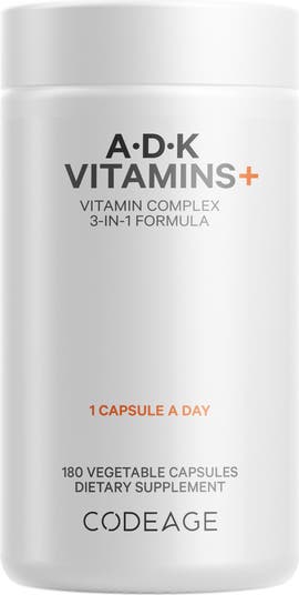 Codeage ADK Vitamins supplement combines vitamins A, D3, K1, and K2 (MK 4 & MK 7) in a single formula. Convenient to use with just one capsule a day, it provides a 6-month supply in each bottle.