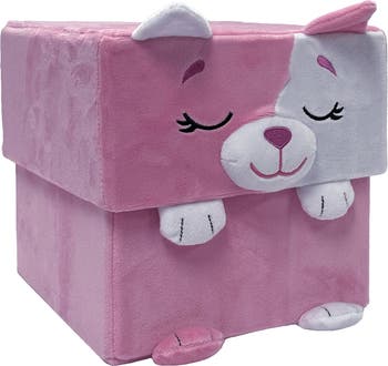ADORABLE STORABLES: BOX & 8" PLUSH - CAT - Happy Nappers Adorable Storables - An 8” Adorable Storable Character Plush Box comes with a Surprise 8” Adorable Plush Toy with Weighted Paws! Join the craze and become amazed! Adorable Storables transform from a box to a cubby. Adorable Storables large lid allows you to have even more stuff in your storable. Adorable Storables are made from high-quality fabrics and can be easily spot-cleaned. These cubbies are strong and durable and include both reinforced bottom and side panels for an extra layer of stability. Lift the lid to hold scrapbook paper, children's toys, towels, craft supplies, and more. Remove the lid and place it on the side for an adorable cubby that lets you see all your storybooks or display treasures. There are several styles of these delightful colorful bins to choose from or mix and match for a whole room full of fun.
