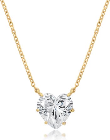 A heart-shaped cubic zirconia pendant lends sparkly romance to this delicate chain necklace plated in 18-karat gold.