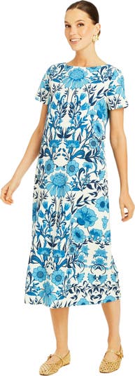 If you are between sizes, we recommend sizing down | Midi-length daytime dress featuring a crew neckline and column silhouette | Bow tie detail in back with keyhole closure | Fitted short sleeves | Concealed zipper in back center | 2-inch hem allowance for easy lengthening | Hand pockets at side seams | Stretch crepe
