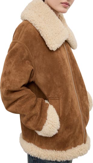 Plus faux shearling lines this faux-suede jacket styled with an oversized spread collar designed to keep you warm all season long.