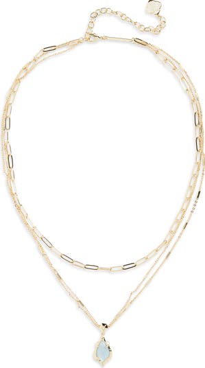 Layer on shine with this stacked necklace centered by a scalloped pendant and plated with 14-karat gold.