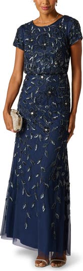 Beaded Mesh Gown