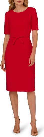 A tonal bow brings a touch of sweet sophistication to this stretchy crepe sheath dress.