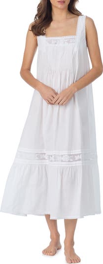 Pintuck pleats, lacy trim and satin ties bring timeless romance to an airy cotton nightgown finished with a ruffled hem.