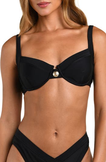 Go for a dip in this sultry underwire swim top made with golden hardware and suspended by supportive adjustable straps.