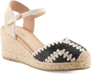 Whipstitch trim and colorblock jute bring an artsy feel to a stylish sandal set on an espadrille-style platform and wedge.