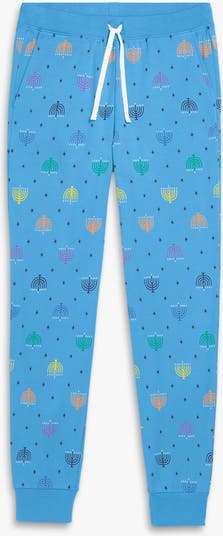 Primary Adult Organic Pj Pant In Rainbow Menorahs, Alternate, color, Cornflower