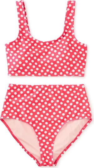 A returning favorite, back by popular demand. This adult two-piece swimsuit offers a confident, flattering fit with thoughtful details designed for long days by the water. Fully lined for comfort and coverage, the top features a low back silhouette with removable padded inserts for customizable support, while the high-rise bottoms provide a secure feel with full coverage through the back. Crafted with UPF 50+ sun protection and made from recycled materials, it's a reliable swim staple that balances comfort, function, and timeless style. Follow our care instructions to help keep it looking its best swim after swim.