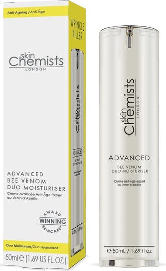 skinChemists Advanced Bee Venom Duo Moisturiser ml For Smooth, Plump & Youthful Skin – Your Daily Luxury Struggling with fine lines and dullness? Our Advanced Bee Venom Duo Moisturiser is crafted for all skin types, delivering a rich blend of vitamins, antioxidants, and moisturisers that instantly plump and smooth your complexion. Infused with bee venom and nourishing ingredients, this silky formula expertly blurs imperfections for a radiant look. What It Does: Instantly hydrates & plumps for a youthful appearance Blurs fine lines & wrinkles for smoother skin Nourishes with essential vitamins & antioxidants for overall skin health Lightweight & absorbs quickly, perfect under makeup The Solution: Fine lines holding you back? Experience visibly smoother skin. Lackluster complexion? Revitalise your glow with deep hydration. How to Use: Apply a small amount onto clean skin morning & night. Follow with your favourite serum for best results. Why You'll Love It: Suitable for all skin types, including sensitive Free from parabens, sulfates & artificial fragrances Shop now and experience the luxurious difference! Apply during your skincare routine, focusing on concerned areas. Always do a patch test before using new products.