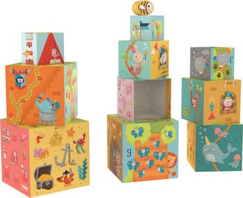Spark early learning and imaginative play with the Adventure Stacking Game—designed for toddlers 12+ months to build skills through hands-on play. This vibrant set includes ten illustrated stacking cubes that teach number counting, color recognition, and picture matching. Toddlers discover Bababoo’s animal friends while stacking and playing. A charming wooden bee figurine made from durable beech wood sparks imaginative play. Designed in Europe, the Bababoo and friends® Adventure Stacking Game is crafted from premium materials for lasting fun.