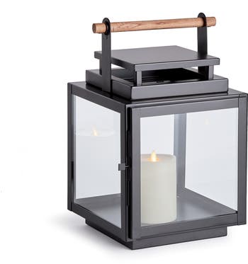With a teak handle, wide glass panes and tailored square profile, this outdoor lantern is a handsome look for patio, porch or lanai. An exclusive design you won't see anywhere else.