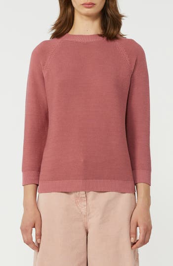 This relaxed-fit sweater is knit from cotton yarn in a link stitch that feels light and breathable. Finished with a wide crew neckline, three-quarter raglan sleeves and ribbed trim, it's an easy layer you'll reach for year-round.