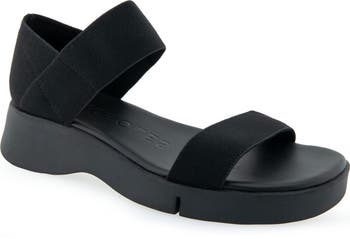 Contoured cushioning supports you in this faux-leather sandal featuring comfortable elastic straps and balanced by a platform lug sole.