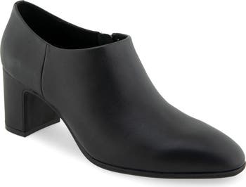 Sleek, streamlined style modernizes the look of an abbreviated block-heel bootie that offers everyday comfort with an OrthoLite® footbed and flexible sole.